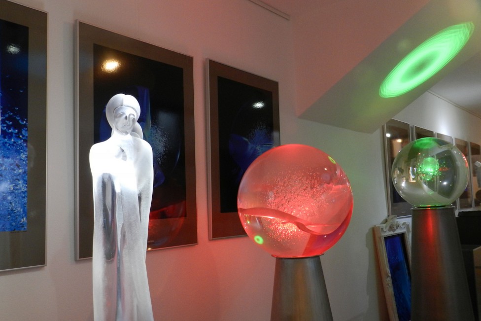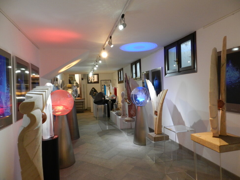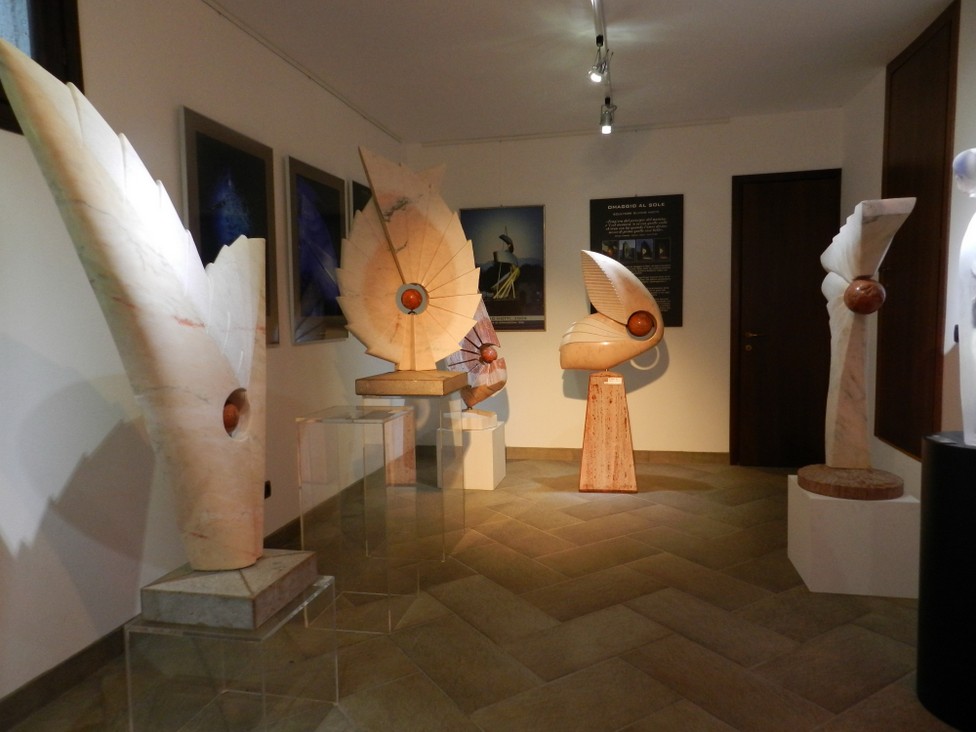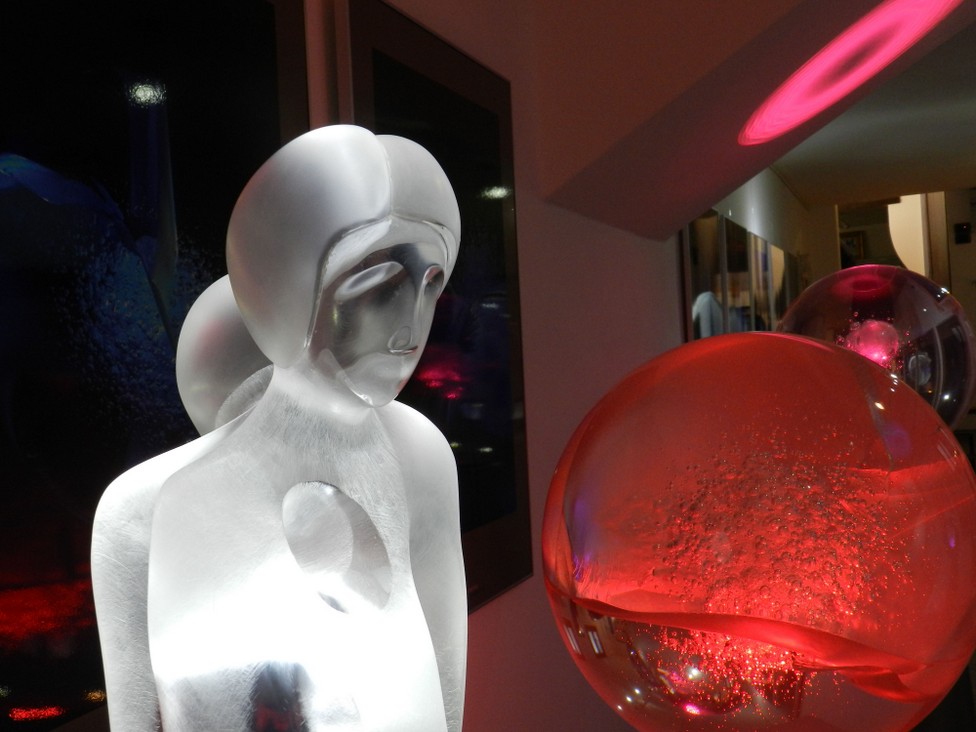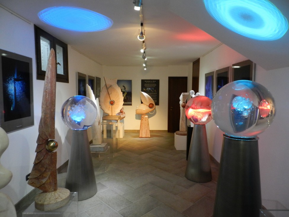 Il metacrilato può essere un materiale altamente idoneo in scultura, ed ecco che siamo qui indotti a tornare sull'argomento, dopo aver ammirato alcune altre opere eseguite dallo scultore Elvino Motti. Tra queste, su tutte, spicca una sfera con tre fratture che l'attraversano da parte a parte, le quali determinano al suo interno giochi di forme e luci mutevoli a mano a mano che le si gira attorno. Le proprietà ottiche del materiale ne risultano così moltiplicate ed esaltate in massimo grado.